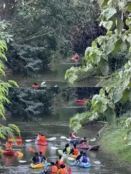 在这里划皮划艇,您将沿着两岸绿树成荫、森林茂密的溪流缓缓前行。最令人印象深刻的是清澈见底的泉水,让您可以清晰地看到水下的绿色藻类。宁静的树荫和清新的空气,使划桨成为一种真正放松身心的自然体验。🛶💰