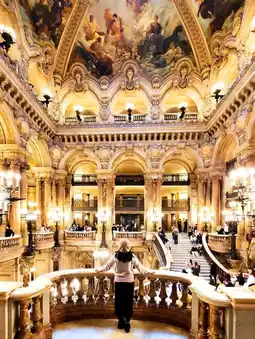 步行前往巴黎歌剧院(地址:Pl. de l'Opéra, 75009 Paris),它美轮美奂,内部充满戏剧氛围。