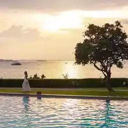 有两个大型游泳池,我们可以在泳池中畅游,欣赏美丽的海景。