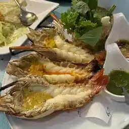 • 烤虾,个头大,肉质鲜嫩多汁,酱汁美味