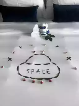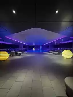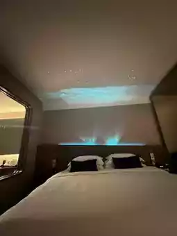酒店大堂设计精美,一进房间就发现天花板上不仅有星空,还有极光💓 感谢酒店工作人员为我们准备的生日装饰和小礼物,孩子们非常开心!酒店房间宽敞,床也很大很舒服😌 眺望海景,景色优美,令人放松。