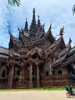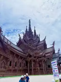 这绝对是我在芭堤雅最期待的景点之一。我远远就能看到它的轮廓,就像一座巨大的、雕刻精美的木制城堡矗立在海边。第一眼看到它时,我简直惊呆了,“哇!”——任何照片都无法捕捉到那种震撼。