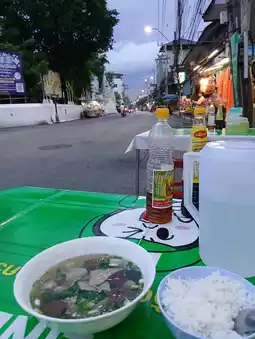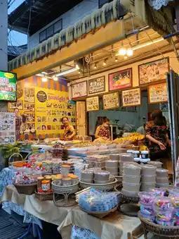 晚上:在玛哈泰寺前散步,寻找美食。一定要尝尝杰诺 (Je Nok) 的猪血汤,味道非常正宗。最后,在诺诺 (Nok Noi) 甜品店享用甜点。这家店的甜点非常美味,经常需要排队等候。🥰 #碧差汶里 #碧差汶里