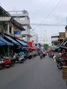 📍上午:首先前往位于碧差汶里中心的玛哈泰沃拉维汉寺 (Wat Mahathat Worawihan) 参拜。寺庙拥有五座白色尖顶佛塔,以及供奉着主佛像的皇家佛殿。之后,漫步碧差汶里早市,感受清晨的活力。别忘了在早市品尝碧差汶里特色美食——咖喱面 (Khao Chae)。📍