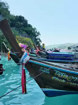我们一抵达甲米,就立刻搭乘快艇前往皮皮岛。海水清澈见底,翠绿色的海水与石灰岩峭壁交相辉映,美得令人惊叹。在这里,你可以尽情享受浮潜的乐趣,寻找小丑鱼,欣赏无需滤镜的纯净海水。