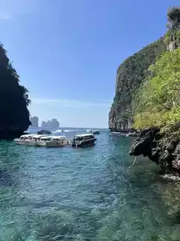 这次旅行的亮点无疑是玛雅湾之旅。乘船前往玛雅湾的旅程本身就美不胜收——石灰岩峭壁从海中拔地而起,壮丽无比,小岛点缀在地平线上,宛如梦境一般。当我们最终踏上玛雅湾的那一刻,更是被眼前的景象深深震撼。难怪它如今受到如此周全的保护。它的美如此精致,近乎神圣。