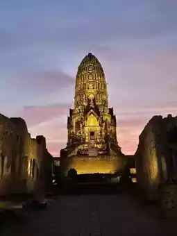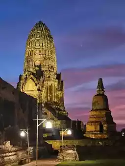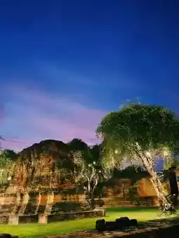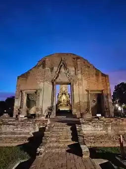 拉差布拉那寺(Wat Ratchaburana)是大城府最大、最古老的寺庙。它由三披耶国王于1967年建造,是一处非常美丽的古迹。夜晚的拉差布拉那寺更显壮丽,灯光映照下的佛塔闪耀着金色的光芒,美得令人流连忘返。🕘