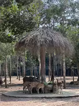 园内还有一家长颈鹿餐厅,您可以近距离接触长颈鹿、喂食它们并拍照。