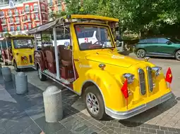- 乘坐色彩缤纷的长条高尔夫球车游览小镇