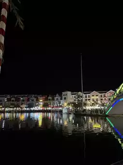 欧式建筑倒映在灯光下,美不胜收,是绝佳的拍照地点📸。您可以漫步河畔,在河边咖啡馆享受一杯咖啡☕🍹,或者乘坐贡多拉,感受浪漫氛围💑。热闹的氛围非常适合朋友、家人或情侣前来欣赏迷人的夜景。💡