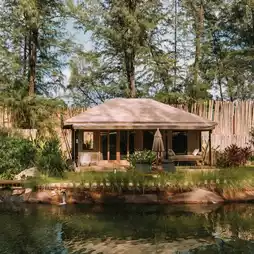如果你来普吉岛不想住千篇一律的酒店,我觉得这里绝对是内容创作者的理想之选,强烈推荐大家来体验。普吉岛双棕榈帐篷营地 (Twinpalms Tented Camp Phuket) 位于普吉府邦涛海滩附近,是一家豪华露营度假村。这里仿佛置身于非洲野生动物园,四周环绕着设计精美的帐篷,与泻湖畔的自然风光完美融合。公共区域只有一个大堂,你可以在这里放松身心,在酒吧品尝茶、咖啡或鸡尾酒。日落时分,你可以围坐在篝火旁,欣赏泰式传统音乐“khim”的演奏,还可以品尝经典的泰式甜点——芒果糯米饭。每天的最后一项活动是挂钟仪式,象征着与自然的连接。我认为这绝对不容错过。晚上,你还可以拍摄美丽的照片。