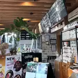 距离是拉差中心 (Central Sriracha) 步行约 7 分钟。这家咖啡馆位于 Cape Racha 酒店一楼,进门右手边就是。搭乘摩托车出租车或双条车也很方便。