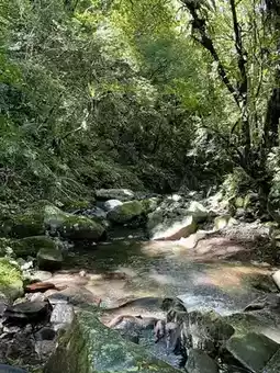 原先的小路沿途树荫蔽日,所以不用担心晒伤。途中有很多需要涉水而过的路段,清凉的溪水非常舒适。