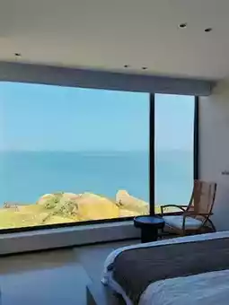 落地窗让海景尽收眼底,躺在床上就能欣赏到。24