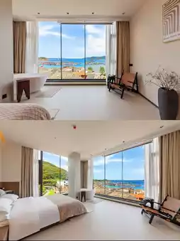 度假村的设计充满了南法风情,每一栋石屋都巧妙地融合了历史与现代元素。走进房间,超大的落地海景窗将无垠的海景尽收眼底,仿佛每一刻都在上演一部天然电影。部分客房还设有私人露台,您可以在那里聆听海浪声,欣赏日落美景,享受属于自己的静谧时光。🏊♀️