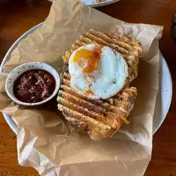 我非常喜欢他们自制的杏仁酱;凌晨四点点了份杏仁酱酸面包配炒蛋当早餐,没想到吐司分量十足,而且鸡蛋还保持着流心嫩滑的状态,真是个惊喜。除了早餐/早午餐,他们还提供烤米饭、牧羊人派和韩式料理。