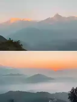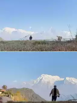 ■凌晨4:30:前往萨朗科特观看日出。喜马拉雅山脉在黎明时分沐浴在金色的阳光下,景色壮丽无比。