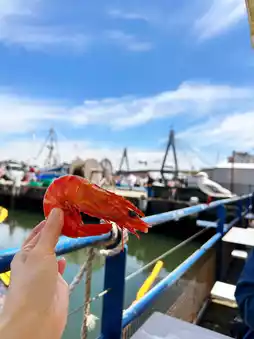 一定要早点去——早上7点就开门了,很快就会人满为患!宽敞的户外用餐区让你在享受美食的同时,沐浴着阳光,感受着习习海风。小贴士:不妨多逛逛不同的摊位,品尝各种不同的海鲜。这里的虾绝对不容错过——鲜嫩多汁,甜美无比。买一盘虾,找个公共餐桌坐下,尽情享用吧。