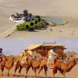 . 鸣沙山和月牙湖:骑骆驼穿越沙漠,体验沙丘的浩瀚,或攀登沙丘欣赏壮丽的日落。傍晚,金色的夕阳映照在月牙湖上,构成一幅令人陶醉的画面。6