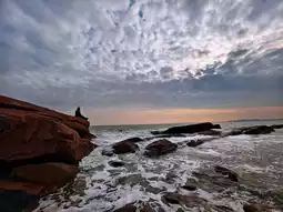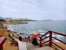 根据天气预报,下午两三点会放晴,所以我们去了四方路步行街吃饭。那里人很多,年货气氛很浓。我们吃了1937,砂锅烤黄花鱼味道不错。吃完饭后,我打车到燕儿岛智慧公园C2出口,沿着海边栈道向右走,走了几十米后看到一条通往海滩的台阶。我走到礁石左侧,看到一个凹陷的地方,其实并不是洞穴。有人站在最里面拍照,那里是网红的洞穴拍摄地。我下午两点到达,正好还没涨潮。之后我返回新宇咖啡的下车点。另一边是长长的情人栈道。我沿着原路返回,沿着海滩朝出发方向走了大约半小时,到达情人坝。一路上太阳出来了,海景格外美丽。我边走边拍照。到达情人坝后,我等到下午五点日落。天空变成了粉红色和蓝色。等待的时候,我在肯德基里坐了一会儿取暖。海边风很大,幸好我带了暖宝宝。之后我们从奥帆馆走到五四广场,在万象餐厅吃过晚饭后,出来看了6点半开始的灯光秀。真是完美的一天!青岛的天气对我特别好。虽然阴天,但海边的能见度很高。下午太阳出来后,我们欣赏了日落和海景。今天临时安排的行程非常值得推荐。我真的太爱青岛了!