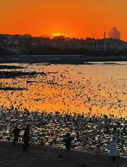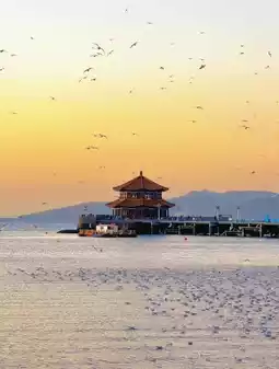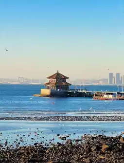 ✅ 屋顶露台,日落时分俯瞰胶州湾