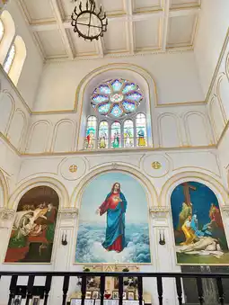 与许多欧洲教堂不同,青岛圣弥额尔大教堂收取少量门票(成人10元/学生5元),但绝对物超所值。教堂内部,18米高的拱形天花板、璀璨的彩色玻璃窗和庄严肃穆的壁画,营造出宁静祥和的氛围。