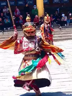 建筑风格令人叹为观止,鲜艳的红、黄、蓝三色在群山的映衬下格外醒目。漫步寺院,耳边传来诵经声,看到经幡在微风中飘扬,令人心旷神怡。