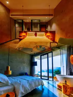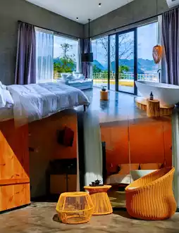 每一间客房都如同打开一个神秘的盒子,充满惊喜!您可以选择湖景房、山景房或观星房,部分客房还配备浴缸!最令人惊喜的是地暖!即使在寒冷的冬季,您也可以赤脚走在温暖的地板上,即使身处深山老林也能倍感舒适。