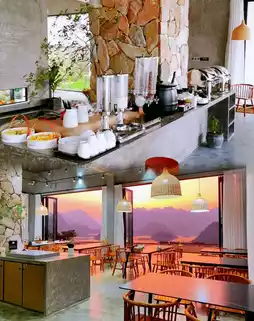 餐厅每日选用新鲜食材烹制正宗中式佳肴,因此团队建设活动无需自己动手做饭!夜晚,您可以在屋顶露台上,一边欣赏星空,一边品尝美酒,感受山风拂面,忘却所有烦恼。