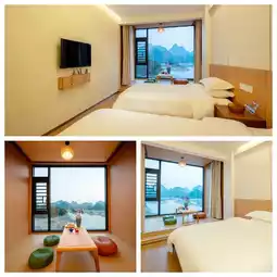 最让我印象深刻的是宽敞的平台和绝佳的视野!落地玻璃窗正对桃花湖,平台上点缀着鲜花绿植,每天都能欣赏到云海和落日的壮丽景色,营造出令人心旷神怡的氛围!清晨,还可以在平台上练习八段锦,将健身与美景完美结合!