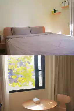 第二天,我决定换到“大松关月”,这是一间35平方米的独立一室一厅一卫的房间,空间超级宽敞✨。午后的阳光透过纱帘洒进来,光影交错,美得像一幅画,待在房间里就觉得无比幸福😍。📸