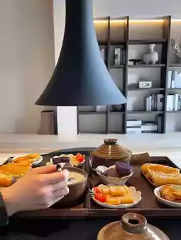 民宿的设计风格偏向于极简的侘寂之美。每间客房都设有延伸的户外阳台,客厅、阳台和浴室都采用了落地窗和百叶窗,营造出阳光明媚的氛围,让人仿佛置身于浪漫的法国南部。此刻