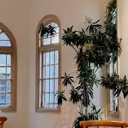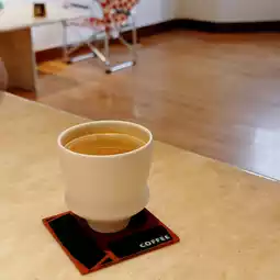一楼有一个很大的庭院。进门右侧是咖啡馆和咖啡制作区,周围散落着一些吧台座位。