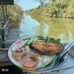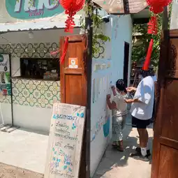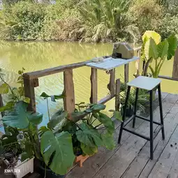在罗勇河畔的复古风格小店,提供各种美食和咖啡,氛围温馨舒适,店内设有多个座位。如果您光临,千万不要错过他们的龙虾包。