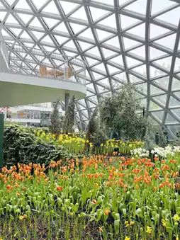 Why do tulips look so beautiful when taking pictures here? Another reason might be because the hall building is beautiful. It is a transparent triangular grid that curves together. Taking pictures with flowers goes well together. And they have additional flowers planted to replace the ones that are always withered, making the colors always fresh and beautiful. P.S. It is very cold here. Bring a jacket. #Rayong tulips #Rayong tulip garden #Rayong tulip garden #Tulip garden