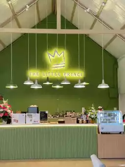 คาเฟ่โทนสีขาวสะอาดตา ตัดกับสีเขียวของดอกหญ้าสวยเก๋ มีบริการเครื่องดื่ม咖啡,面包店,食物☕️🍰🍟