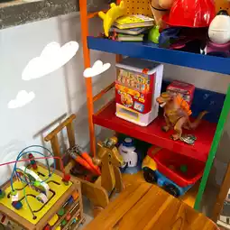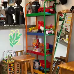 🎀🦕 这里的亮点是“游乐区”,配备了木制游乐设施和益智游戏区。🧸 孩子们可以在这里安全玩耍,家长们则可以悠闲地喝杯咖啡,看着孩子们玩耍。☕️