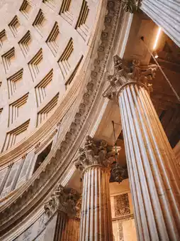 阳光透过柱子的缝隙洒下,光影轻轻飘动。