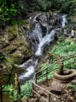 踏入这里,仿佛置身于现实版的《绿野仙踪》。雨林中古树参天,阳光透过层层枝叶洒下斑驳的光影。沿着蜿蜒的小径漫步,潺潺溪流一路相伴,各种珍稀热带植物随处可见。走到尽头,您将看到一座高达60多米的壮丽瀑布,水花飞溅,微风拂面,是绝佳的拍照地点📸。