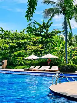 也完全不用担心!酒店拥有自己的私人海滩,细腻柔软的沙滩赤脚踩上去感觉棒极了。您可以漫步沙滩、享受日光浴,或者租一张躺椅,在人潮涌动中放松身心,静静欣赏海景。酒店还设有多个泳池——成人泳池、儿童泳池以及带滑梯的水上乐园。带孩子的父母完全不用担心,孩子们可以在这里尽情玩耍一整天。我还发现酒店内有一个小花园,种满了各种热带果树。漫步其中,心情无比舒畅!