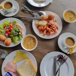 我们在这里享用了自助早餐,每人35万越南盾,原本打算来这里欣赏美景。结果!!我们看到的只有雾😂 雾很浓,很冷。食物种类很多,味道也很棒。