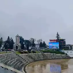 我们停下来拍了一会儿照片。它就在太阳广场对面。雾把地面弄湿了