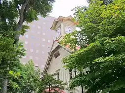 札幌钟楼是一座朴素的木结构建筑,红瓦白墙,是札幌最古老的建筑之一。它始建于1878年,最初是札幌农业大学的操练厅,1881年安装了时钟,至今每小时的钟声依然响彻整座城市。
