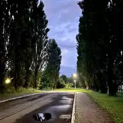 两条杨树成荫的大道和一条银杏树成荫的大道。