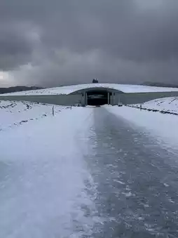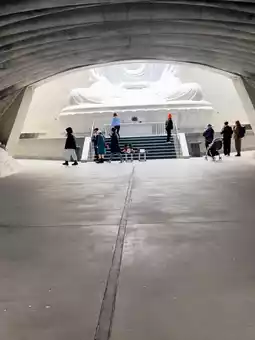 想要瞻仰大佛,必须先穿过一条混凝土隧道,才能看到佛像,这营造出一种宁静祥和的氛围。