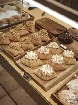 • 每日新鲜出炉的牛角面包——“黄油牛角面包”、“杏仁榛子巧克力酱牛角面包”、“柚子蛋白酥皮牛角面包”等等。 • 其他特色糕点包括“巧克力可颂”(约120泰铢),以及咖啡、冷萃咖啡和时令甜点。 #芭堤雅 #春武里