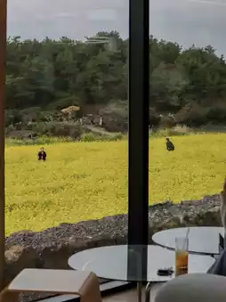 如果你去小菜茶本咖啡馆,就能透过窗户看到油菜花田。