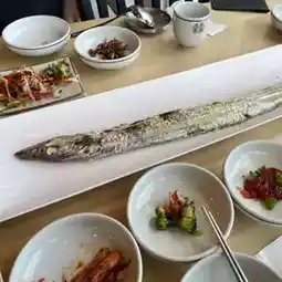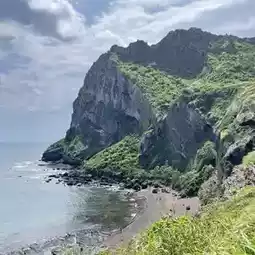 第二天:海日里咖啡馆 → 城山日出峰(联合国教科文组织世界遗产) → 正宗切山刀国汤 → 偶来市场 → 天地渊瀑布 → 济州美香(一家专营带鱼的餐厅)