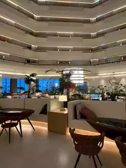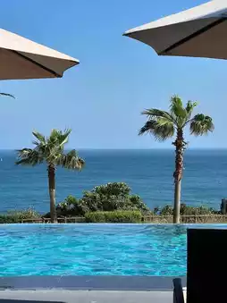 最大的惊喜是屋顶泳池区,无需预约即可随时使用。储物柜、浴袍,甚至护肤品都一应俱全。游泳之后,我躺在泳池边的躺椅上,一边啜饮着冰饮,一边欣赏着夕阳将大海染成金红色,仿佛置身于一座私人岛屿。