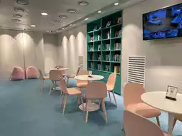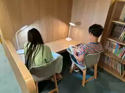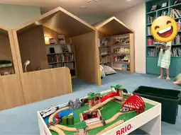 Young children must be accompanied by an adult guardian, and there are adult books and bean bags for reading in a separate area.